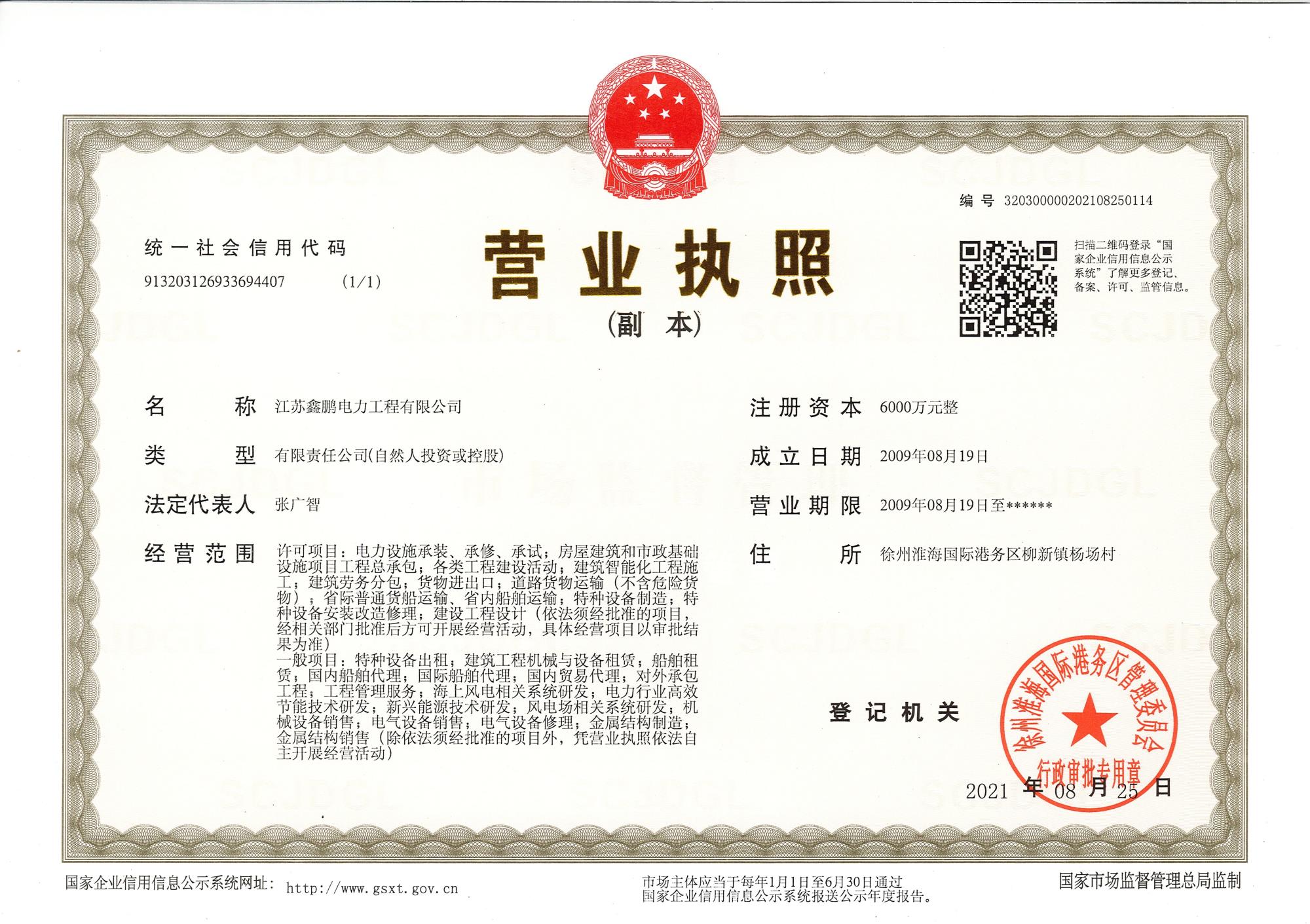 江蘇鑫鵬電力工程有限公司成立于2009年,位于素有“五省通衢”之稱的“古彭”徐州。注冊(cè)資金6000萬元,占地50畝。